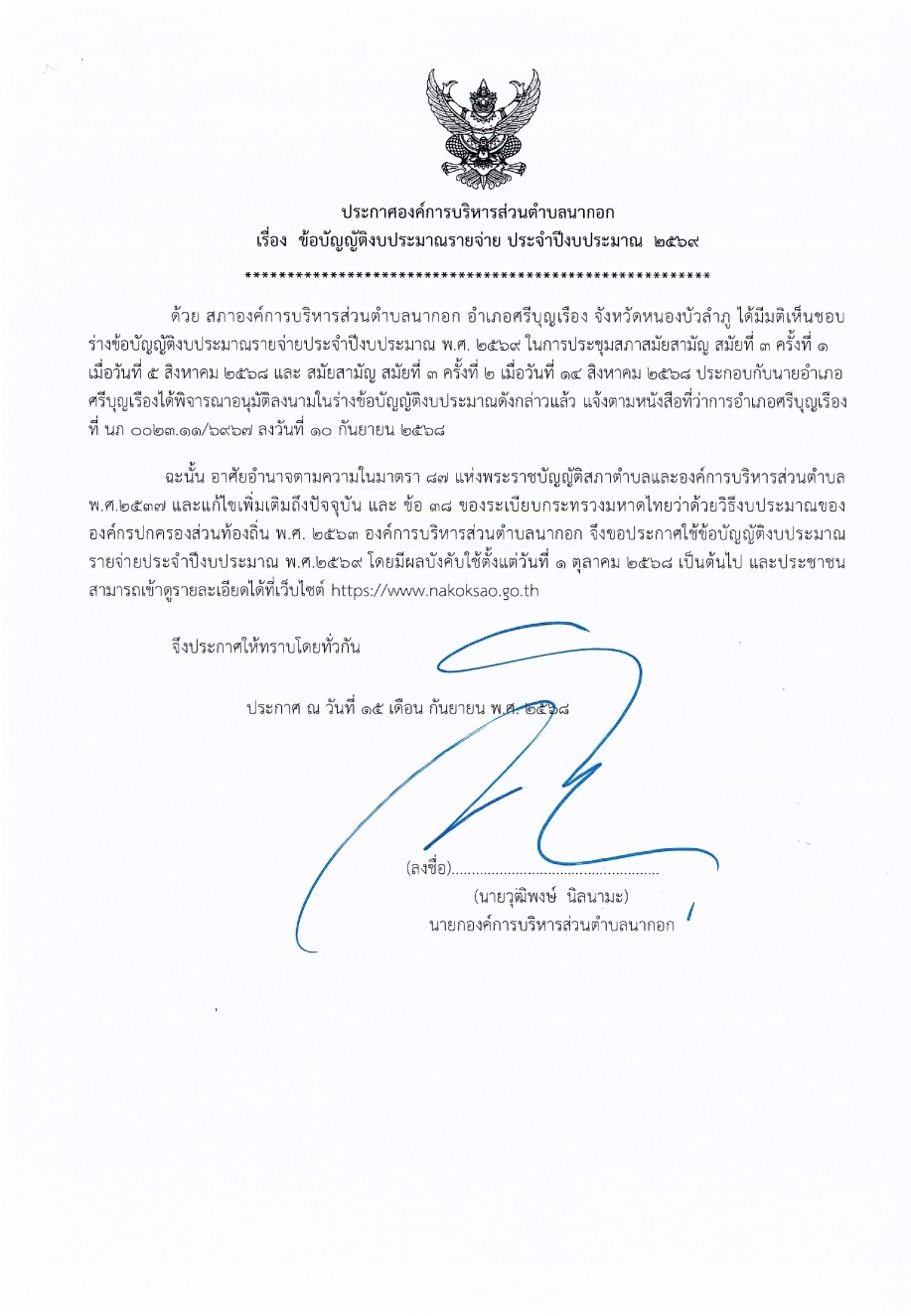 องค์การบริหารส่วนตำบลนากอก ยินดีต้อนรับ    "ปลอดภัยในชีวิต เศรษฐกิจพอเพียง การเมืองโปร่งใส น้ำไหลไฟสว่าง หนทางสะดวก"    องค์การบริหารส่วนตำบลนากอก ยินดีต้อนรับ