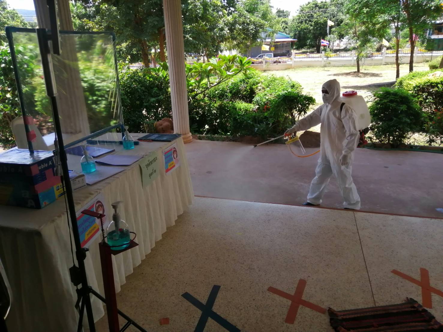 ตรวจตลาดนัด การป้องการโรคติดต่อโรคติดเชื้อไวรัสโคโรนา 2019- ฉีดพ่นยาตามหมู่บ้านพร้อมและสำนักงานอบต.นากอก