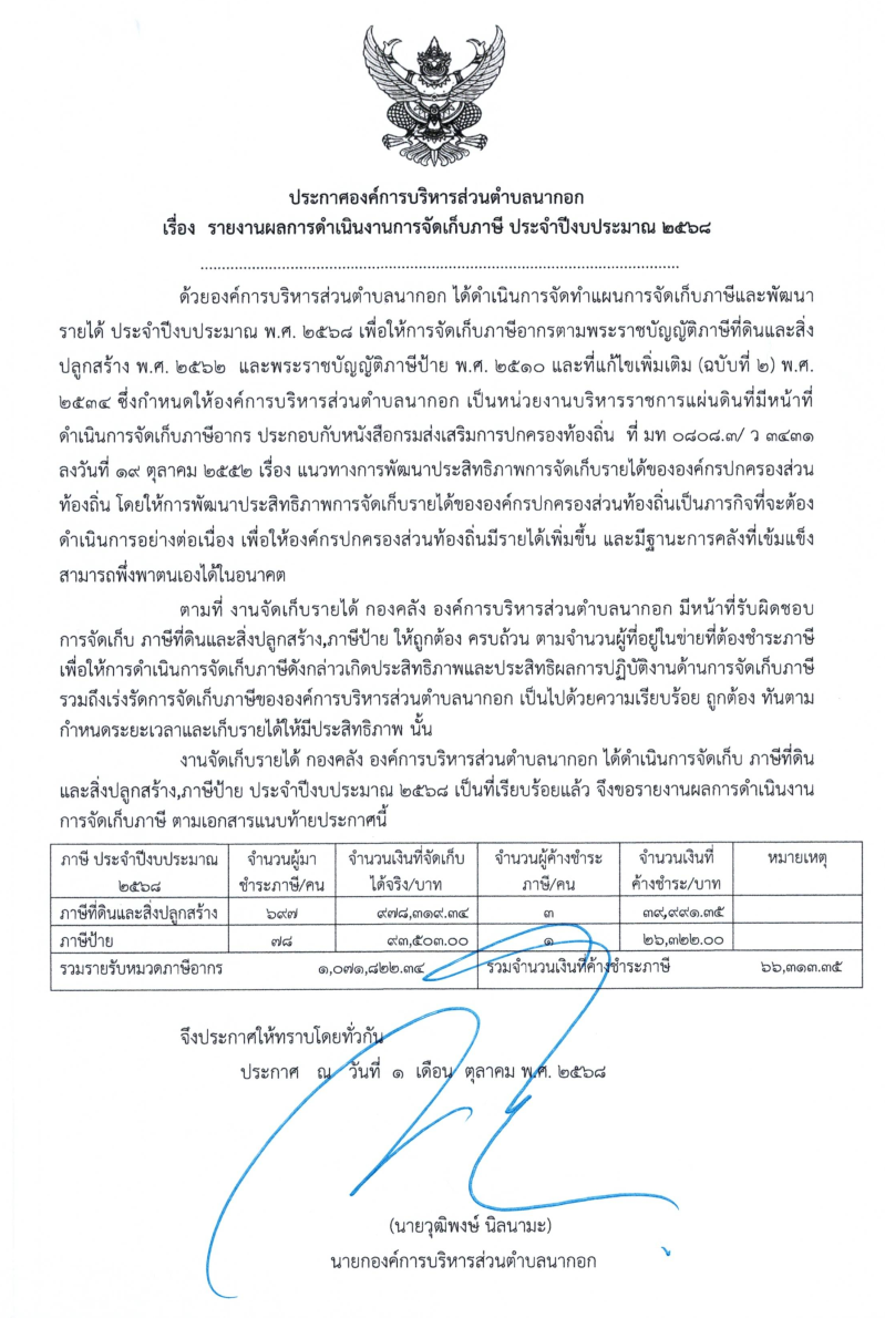 ประกาศผลการดำเนินการจัดเก็บรายได้ 2568