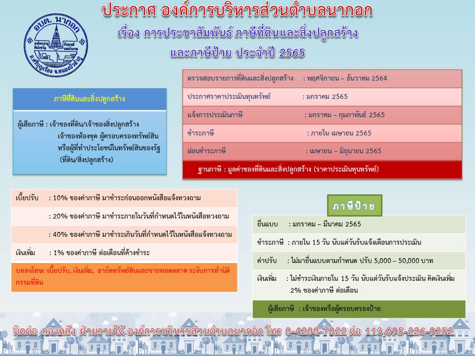แจ้งประชาสัมพันธ์ภาษีที่ดินและสิ่งปลูกสร้าง ภาษีป้าย ประจำปี 2565