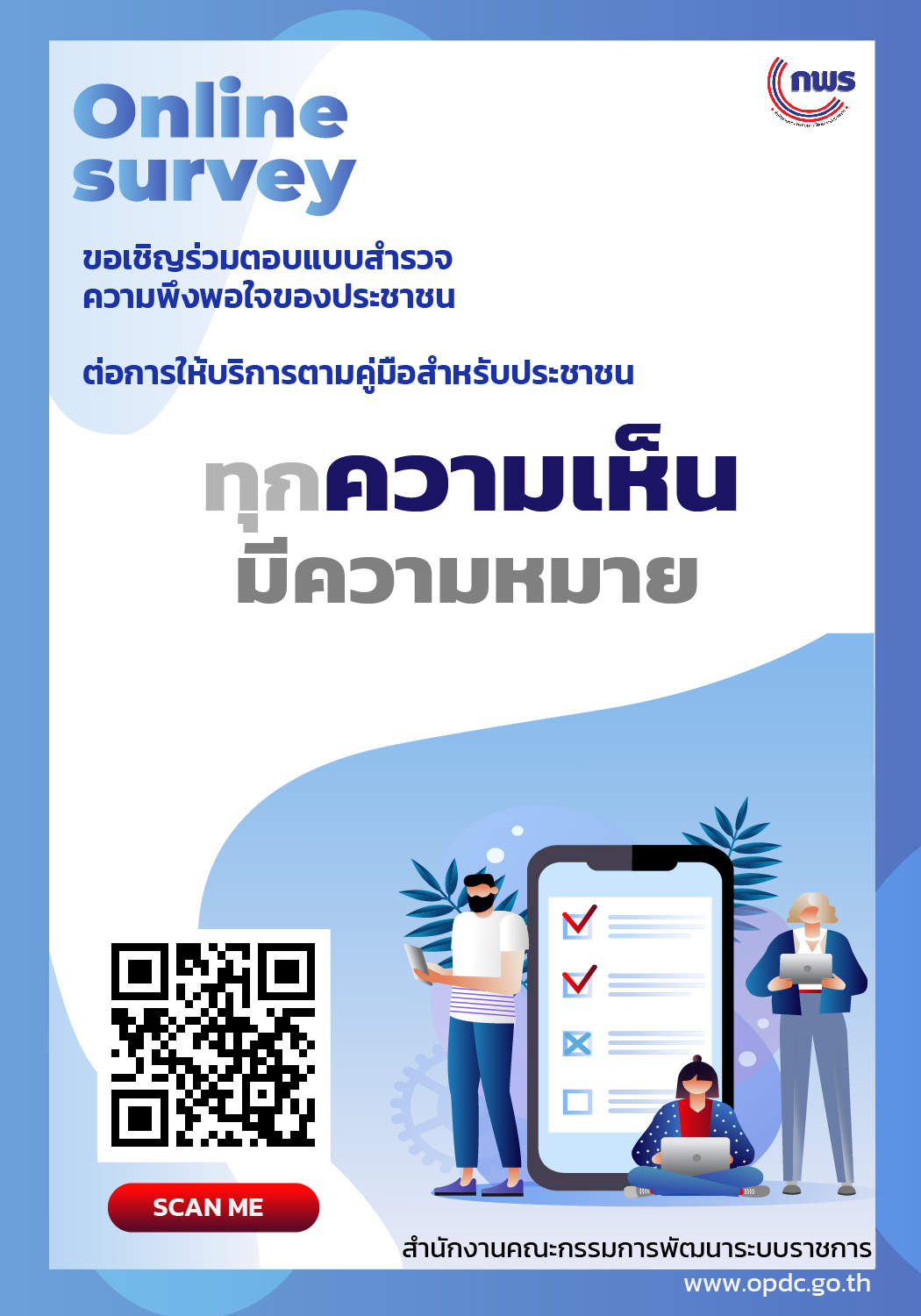 ขอเชิญร่วมตอบแบบสำรวจความพึงพอใจของประชาชนต่อการให้บริการตามคู่มือสำหรับประชาชน