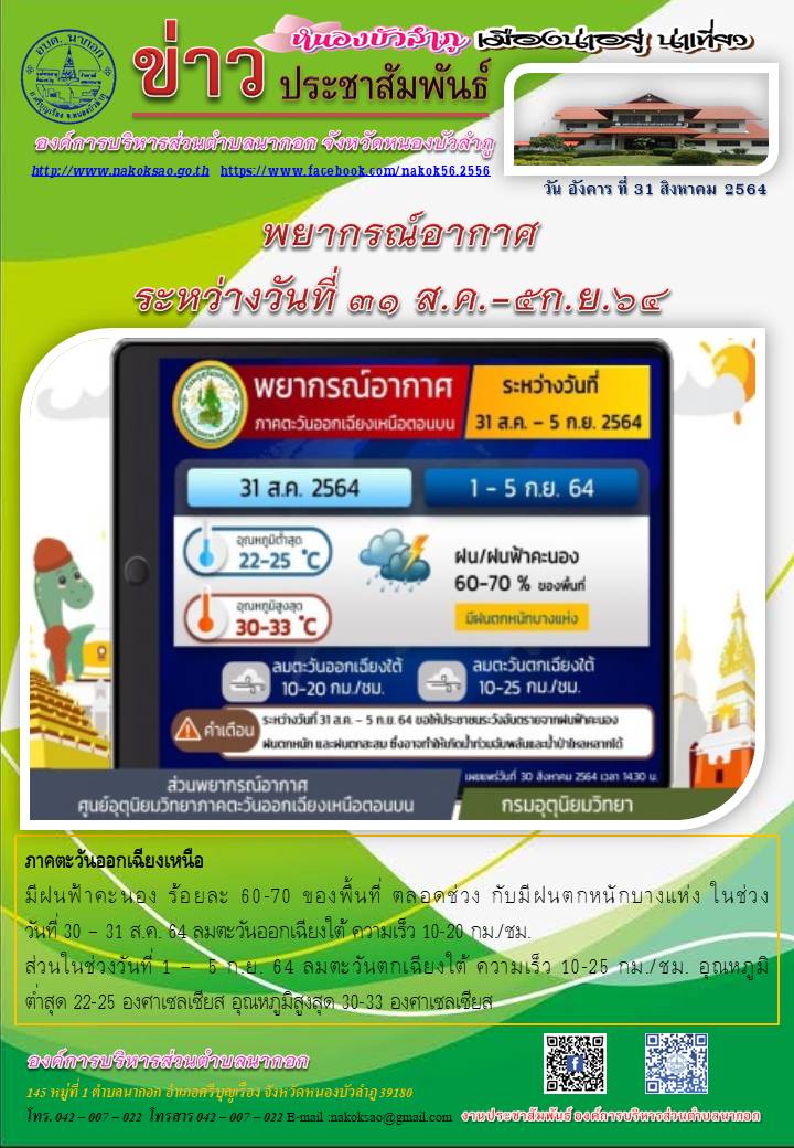 จดหมายข่าวประชาสัมพันธ์ ประจำวันที่ 31 สิงหาคม 2564